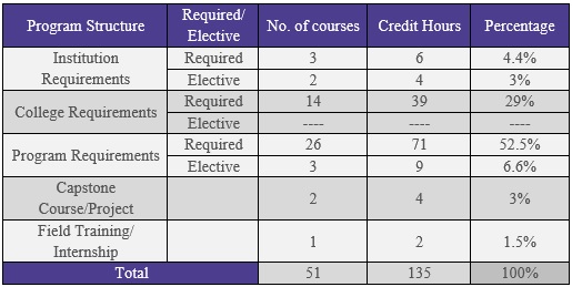 To obtain a Bachelor of Science in Mechanical Engineering. It is required to complete 25 credit hours in the preparatory year and 14 credit hours for a general major in the College of Engineering. To graduate from the program, it is required to complete 135 credit hours in the program, detailed as follows: